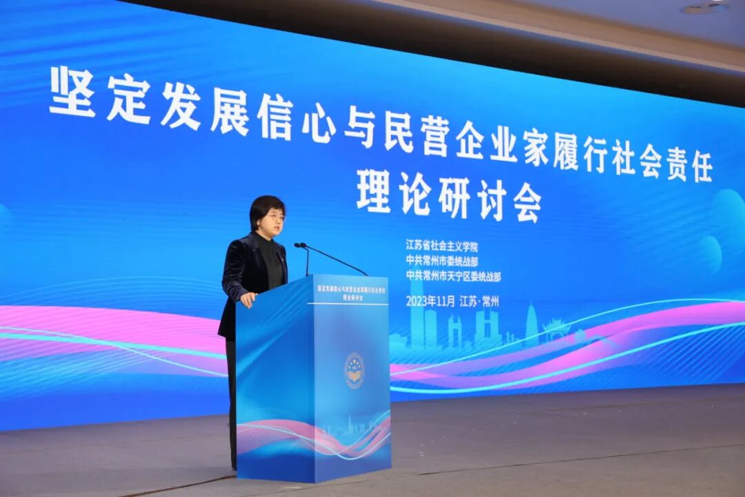 为深入贯彻落实习近平总书记对江苏工作重要讲话精神和《中共中央国务院关于促进民营经济发展壮大的意见》,提升服务民营经济高质量发展的实效,11月8日,由省社会主义学院、常州市委统战部、常州市天宁区委统战部共同主办的“坚定发展信心与民营企业家履行社会责任”理论研讨会在常州华利达服装产业园举行。省委统战部副部长、省社会主义学院党组书记刘步健,常州市委常委、统战部部长杨芬参加会议。