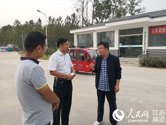 江苏省委统战部派驻扶贫干部、新华村党总支第一书记张峻峰(右一)进村入企调研。