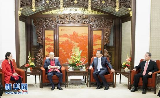 新华网北京4月27日电国务院总理李克强27日下午在中南海紫光阁会见中央文史研究馆馆员、香港大学荣休教授饶宗颐先生。